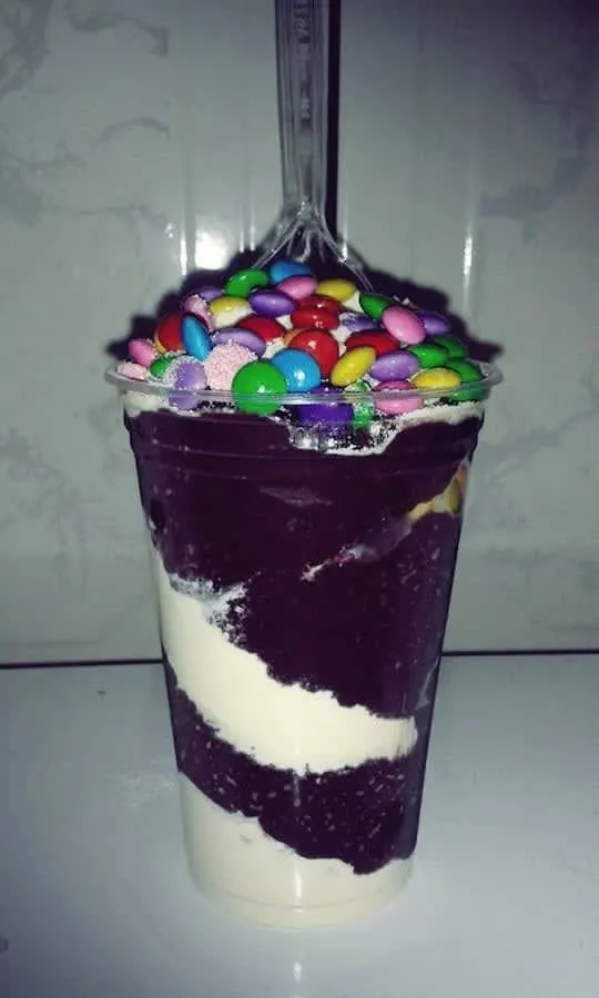 Creme de açaí, leite em pó, leite condensado e Confete de Chocolate